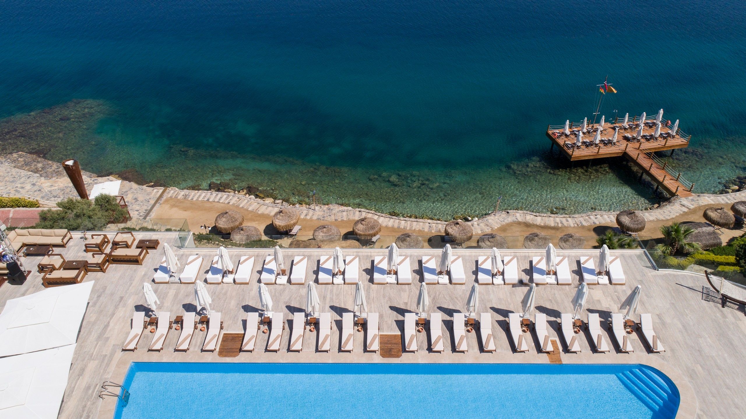 The facility, surrounded by bougainvillea, pine, and olive trees in the natural atmosphere of Torba Bay, offers a fairytale-like holiday atmosphere. With its amenities, private beach, and unique sunset view, the facility can be an ideal option for romantic holidays.